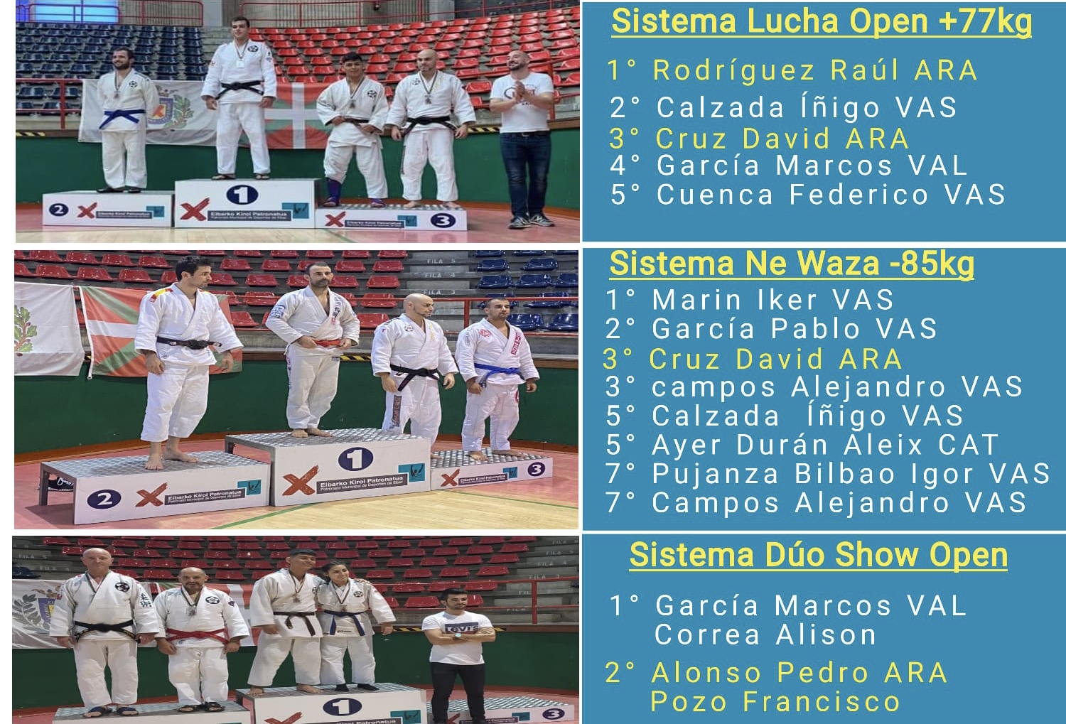 Competía en el mismo cuadro que su compañero de Club Raúl en sistema lucha y tras vencer dos de sus cuatro combates acabaría ocupando el tercer puesto en el cajon.